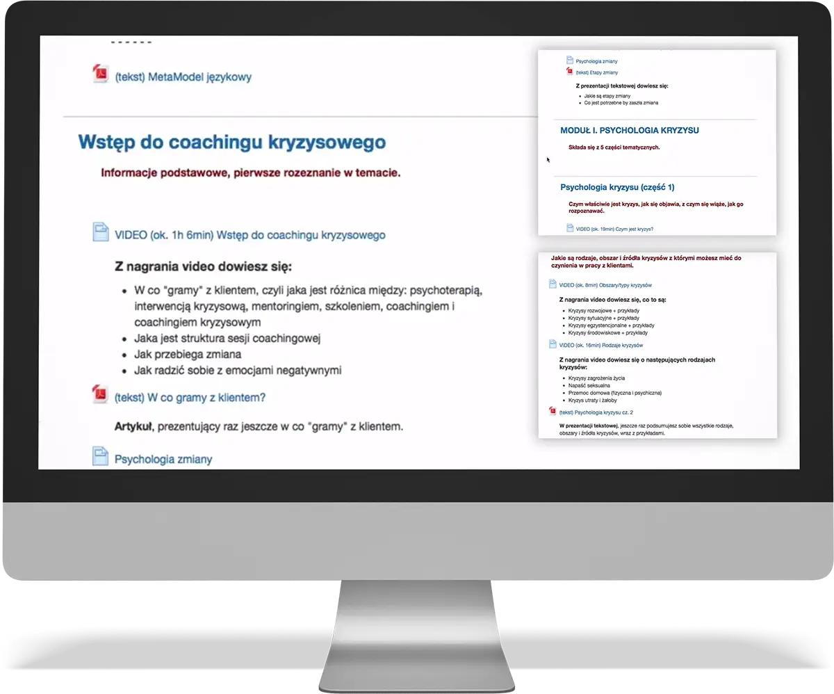 Moduł Coaching Kryzysowy™ prowadzony jest aktualnie formie szkolenia internetowego na naszej platformie e‑learningowej