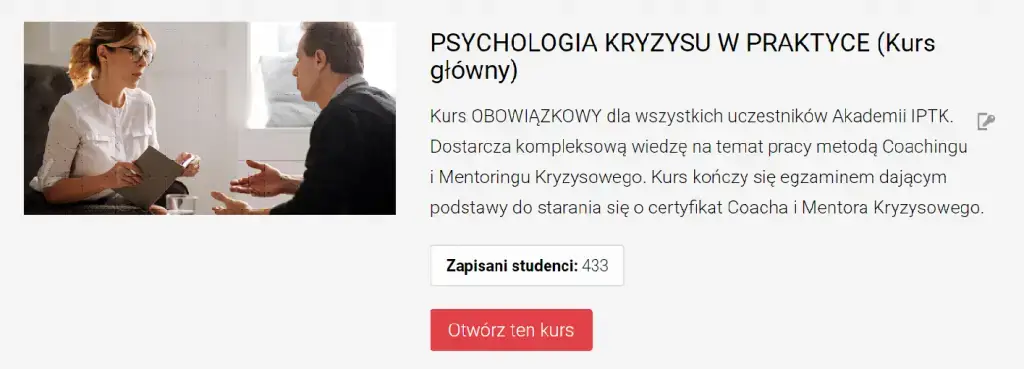 Certyfikat Coacha/Mentora Kryzysowego™ jest podstawą do wzięcia udziału w szkoleniu Terapeuta Kryzysowy IPTK™