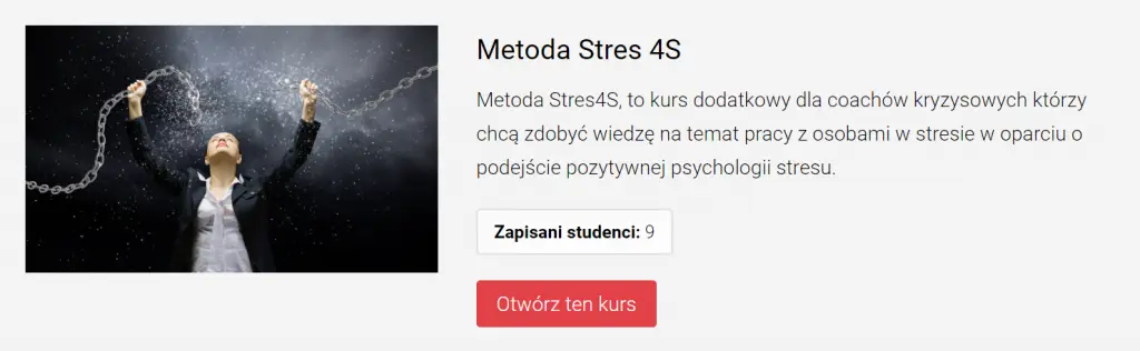 Jako coach / mentor kryzysowy będziesz w stanie pomóc klientom, którym nie jest w stanie pomóc coach pracujący metodami klasycznymi. Biorąc pod uwagę, że 70% osób zgłaszających się do coachów jest w mniejszym lub większym kryzysie, będziesz posiadał lub posiadała unikalne i bardzo poszukiwane na rynku kompetencje